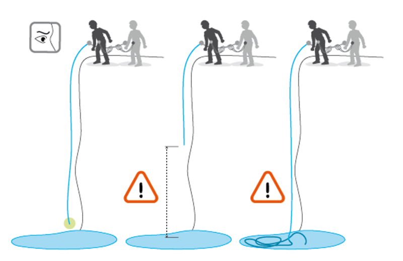 Lorsque l’on effectue une descente en rappel dans une cascade, il est important de régler correctement la longueur de corde pour :